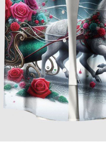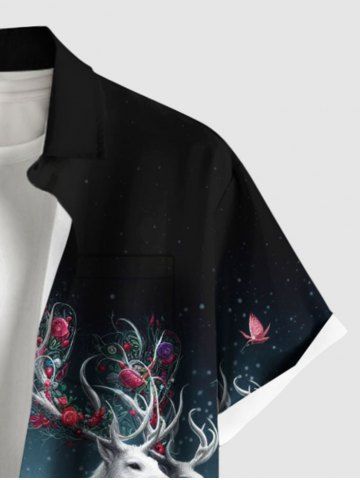 Plus Size Christmas Tree Elk Rose Flower Bird Print Ombre Button Pocket Shirt For Men - Black - M