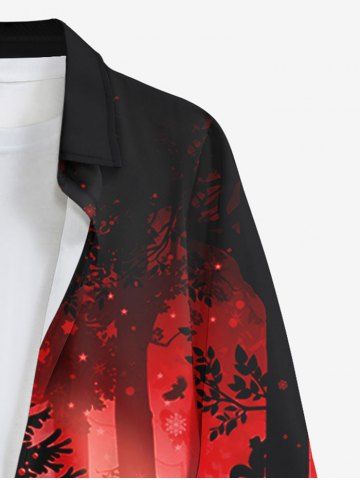 Plus Size Christmas Tree Elk Snowflake Forest Print Ombre Button Long Sleeves Shirt For Men - Red - M
