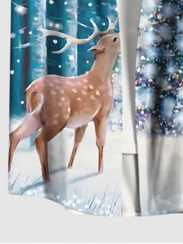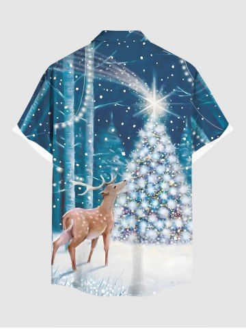 Plus Size Christmas Tree Elk Snowflake Glitter 3D Print Buttons Pocket Shirt For Men - Sky Blue - S