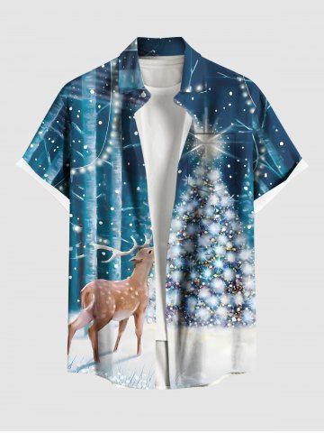 Men's Clothing > Plus Size Christmas Tree Elk Snowflake Glitter 3D Print Buttons Pocket Shirt For Men