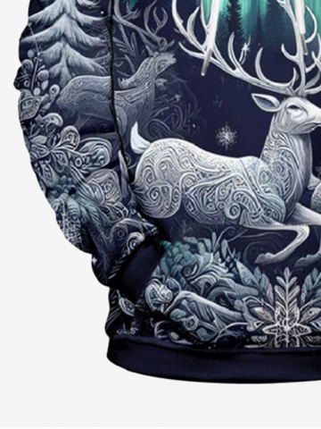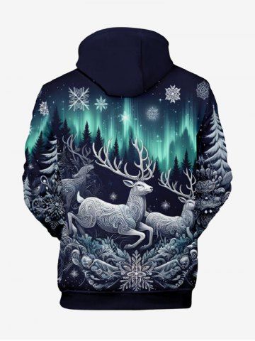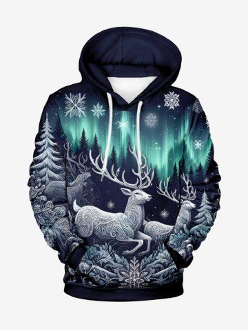 Men's Clothing > Plus Size Christmas Tree Elk Snowflake Glitter Light Beam 3D Print Pocket Drawstring Hoodie For Men