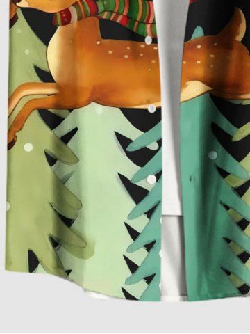 Plus Size Christmas Tree Elk Snowflake Print Buttons Pocket Shirt For Men - Black - S