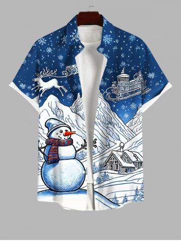 Plus Size Christmas Tree Elk Snowflake Snowman House Print Ombre Button Pocket Shirt For Men - Blue - S