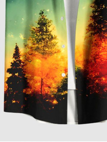 Men's Clothing > Plus Size Christmas Tree Fireworks Print Ombre Button Pocket Shirt For Men