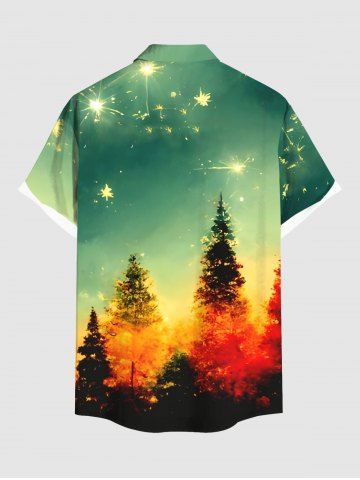 Plus Size Christmas Tree Fireworks Print Ombre Button Pocket Shirt For Men - Green - Xl