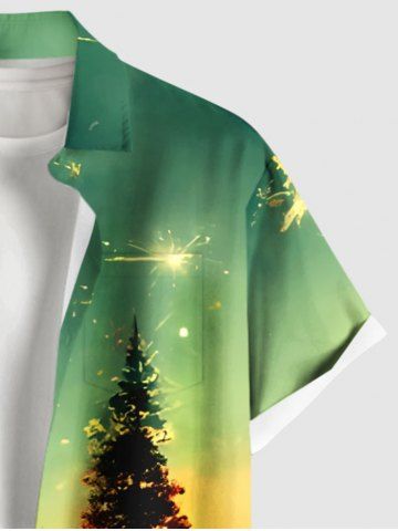 Plus Size Christmas Tree Fireworks Print Ombre Button Pocket Shirt For Men - Green - 2xl