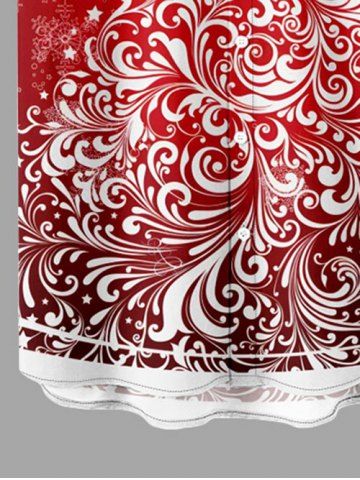 Plus Size Christmas Tree Floral Snowflake Ombre Print Buttons Pocket Shirt For Men - Red - 2xl