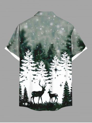 Plus Size Christmas Tree Forest Elk Snowflake Print Ombre Button Pocket Shirt For Men - Black - Xl