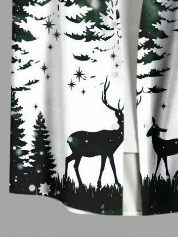 Plus Size Christmas Tree Forest Elk Snowflake Print Ombre Button Pocket Shirt For Men - Black - 5xl