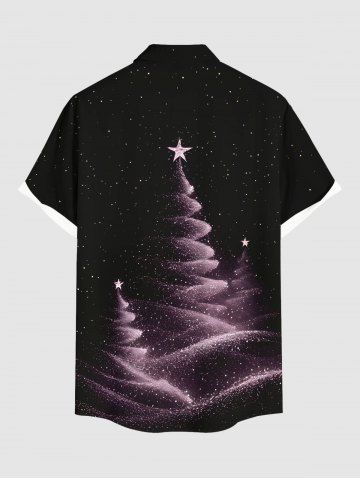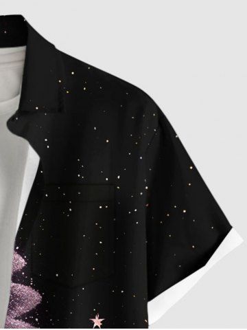 Plus Size Christmas Tree Galaxy Star Glitter 3D Print Buttons Pocket Shirt For Men - Black - 4xl