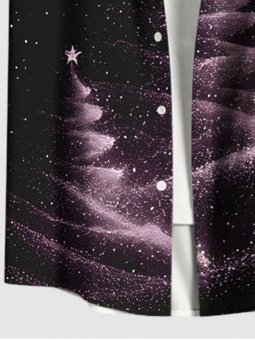 Plus Size Christmas Tree Galaxy Star Glitter 3D Print Buttons Pocket Shirt For Men - Black - 5xl