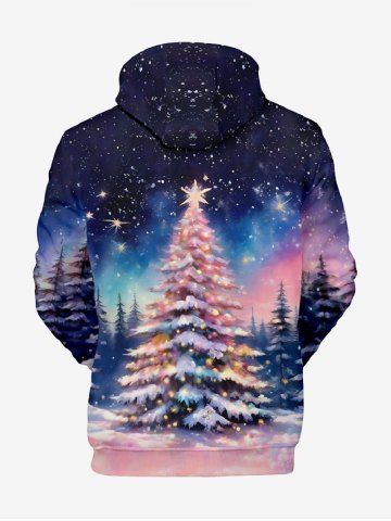 Men's Clothing > Plus Size Christmas Tree Galaxy Star Glitter Light Beam 3D Print Pocket Drawstring Hoodie For Men