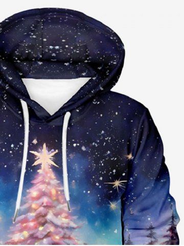 Plus Size Christmas Tree Galaxy Star Glitter Light Beam 3D Print Pocket Drawstring Hoodie For Men - Multi-a - 8xl