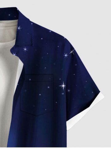 Plus Size Christmas Tree Galaxy Star Musical Notes Print Buttons Pocket Shirt For Men - Navy Blue - M