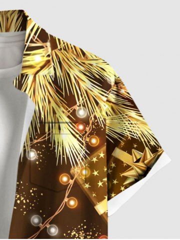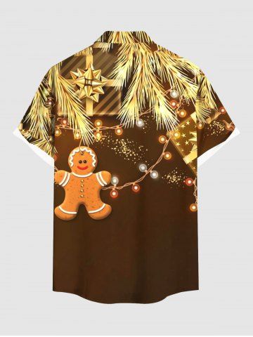 Plus Size Christmas Tree Gift Light Gingerbread Print Button Pocket Shirt For Men - Deep Coffee - 4xl