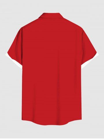 Plus Size Christmas Tree Gingerbread Candy Snowflake Print Buttons Pocket Shirt For Men - Red - Xl