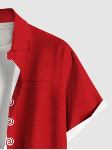 Plus Size Christmas Tree Gingerbread Candy Snowflake Print Buttons Pocket Shirt For Men - Red - 3xl