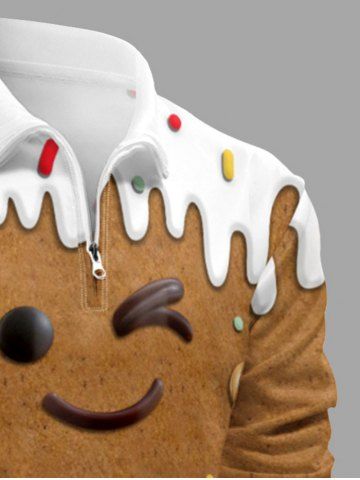 Plus Size Christmas Tree Gingerbread Snowflake Santa Claus Print Zipper Long Sleeve Polo Shirt For Men - Light Brown - S