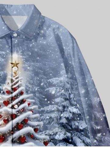 Plus Size Christmas Tree Heart Bell Snowflake Forest Print Ombre Button Long Sleeves Shirt For Men - Blue Gray - M