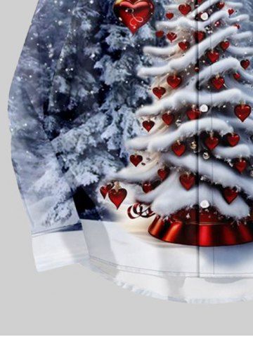 Men's Clothing > Plus Size Christmas Tree Heart Bell Snowflake Forest Print Ombre Button Long Sleeves Shirt For Men