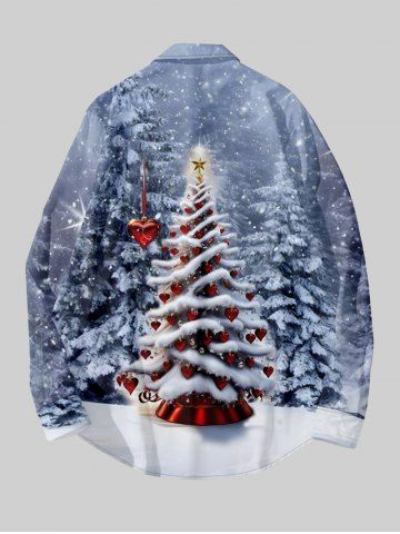 Plus Size Christmas Tree Heart Bell Snowflake Forest Print Ombre Button Long Sleeves Shirt For Men - Blue Gray - 5xl