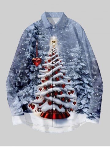 Men's Clothing > Plus Size Christmas Tree Heart Bell Snowflake Forest Print Ombre Button Long Sleeves Shirt For Men