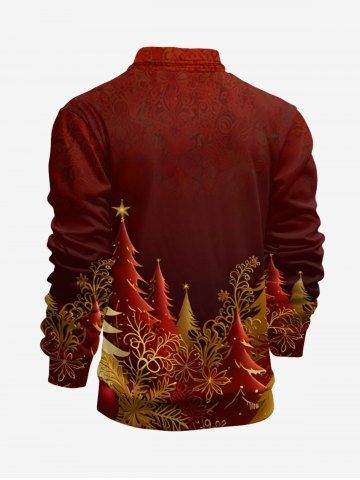 Plus Size Christmas Tree Leaf Print Half Zipper Polo Shirt For Men - Red - Xl