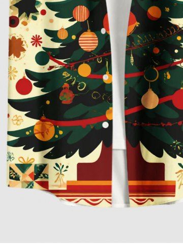 Men's Clothing > Plus Size Christmas Tree Light Ball Snowflake Flowers Print Buttons Pocket Shirt For Men