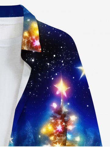 Plus Size Christmas Tree Light Galaxy Star Glitter 3D Print Buttons Pocket Shirt For Men - Multi-a - 7xl