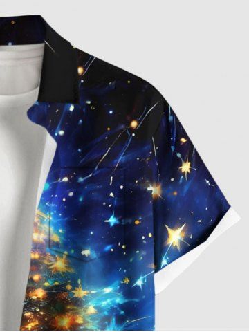 Plus Size Christmas Tree Light Glitter 3D Print Buttons Pocket Shirt For Men - Navy Blue - Xl