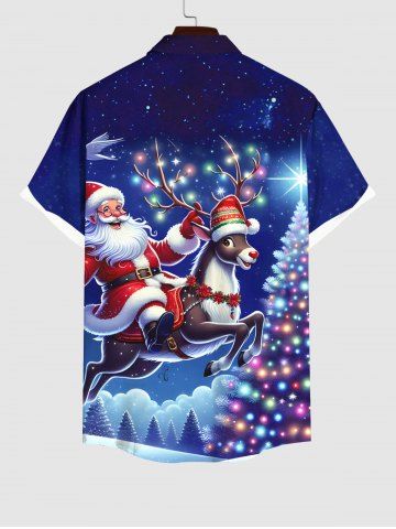 Men's Clothing > Plus Size Christmas Tree Light Hat Elk Santa Claus Glitter Galaxy Print Button Pocket Shirt For Men