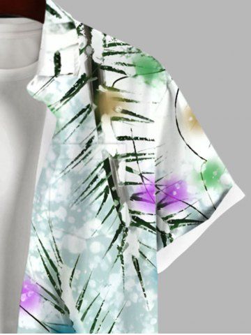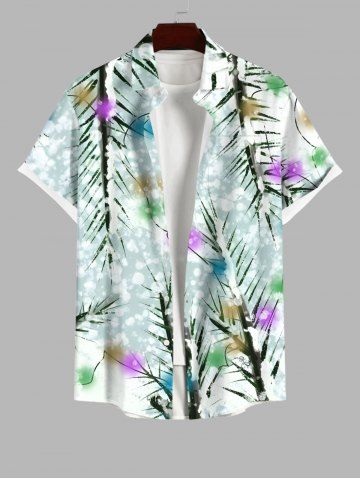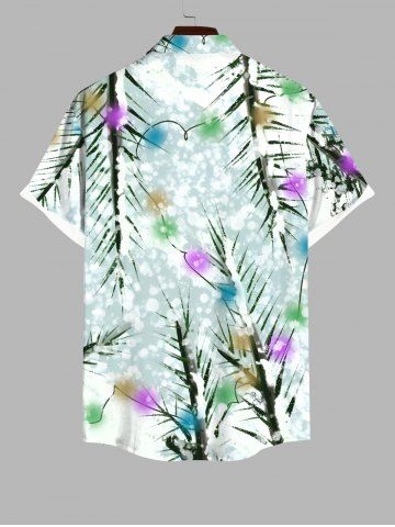 Plus Size Christmas Tree Light Snowflake Print Button Pocket Shirt For Men - Multi-a - 3xl