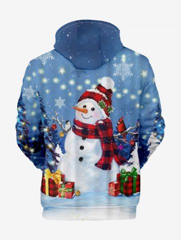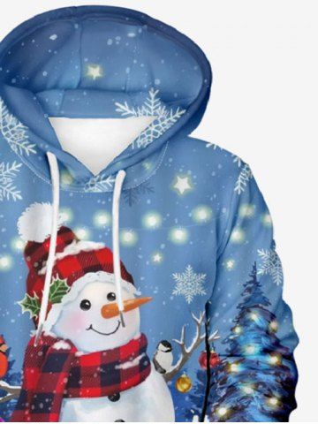 Plus Size Christmas Tree Light Snowflake Snowman Gift Print Pocket Drawstring Pullover Long Sleeves Hoodie For Men - Blue - Xl