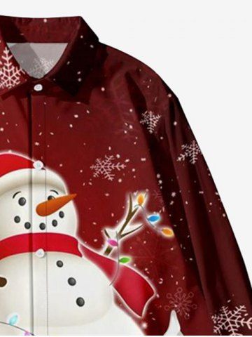 Plus Size Christmas Tree Light Snowman Snowflake Print Ombre Button Long Sleeves Shirt For Men - Red - Xl