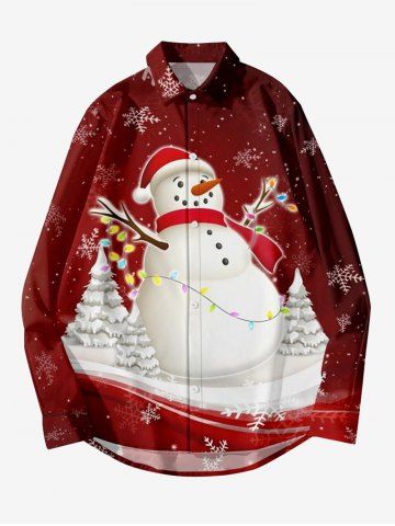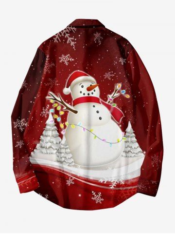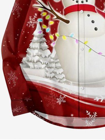 Plus Size Christmas Tree Light Snowman Snowflake Print Ombre Button Long Sleeves Shirt For Men - Red - 4xl