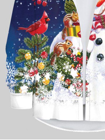 Plus Size Christmas Tree Owl Candle Snowman Snowflake Colorblock Print Buttons Pocket Long Sleeve Shirt For Men - Blue - Xl