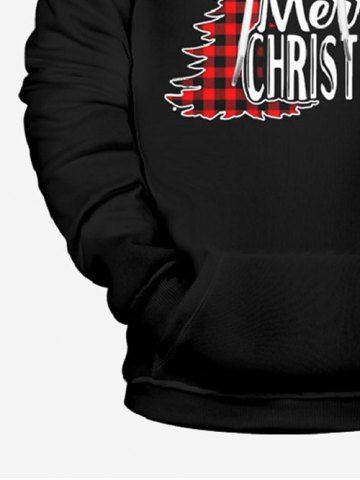 Plus Size Christmas Tree Plaid Print Pocket Drawstring Hoodie For Men - Black - 5xl