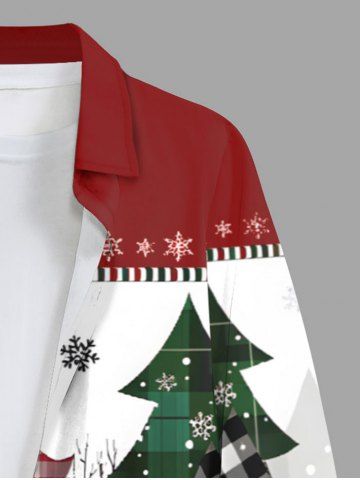 Plus Size Christmas Tree Plaid Snowflake Colorblock Print Buttons Pocket Shirt For Men - Red - 6xl