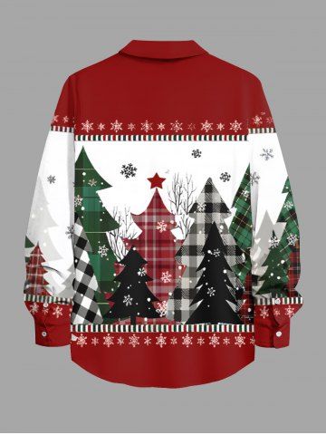 Plus Size Christmas Tree Plaid Snowflake Colorblock Print Buttons Pocket Shirt For Men - Red - 8xl