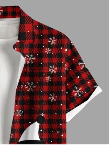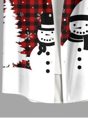Plus Size Christmas Tree Plaid Snowman Snowflake Print Buttons Pocket Shirt For Men - Red - L