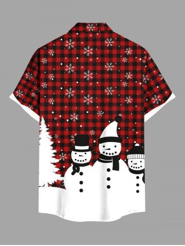 Plus Size Christmas Tree Plaid Snowman Snowflake Print Buttons Pocket Shirt For Men - Red - Xl