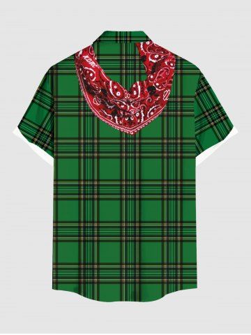 Plus Size Christmas Tree Santa Claus Elk Plaid Print Buttons Pocket Shirt For Men - Deep Green - S