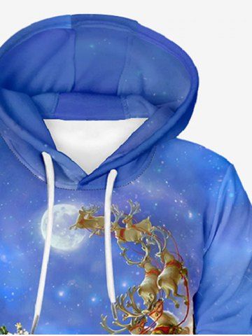 Plus Size Christmas Tree Santa Claus Elk Sled Galaxy Print Drawstring Pockets Hoodie For Men - Sky Blue - 2xl