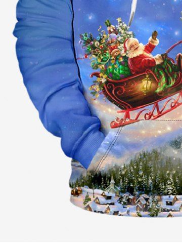 Plus Size Christmas Tree Santa Claus Elk Sled Galaxy Print Drawstring Pockets Hoodie For Men - Sky Blue - 3xl