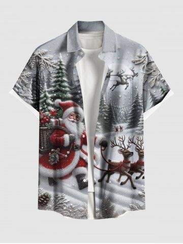 Plus Size Christmas Tree Santa Claus Elk Snowflake Print Buttons Pocket Shirt For Men - Light Gray - L