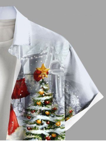 Plus Size Christmas Tree Santa Claus Elk Squirrel Print Buttons Pocket Shirt For Men - White - Xl