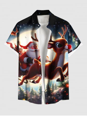 Plus Size Christmas Tree Santa Claus Elk Star Glitter 3D Print Buttons Pocket Shirt For Men - Black - S
