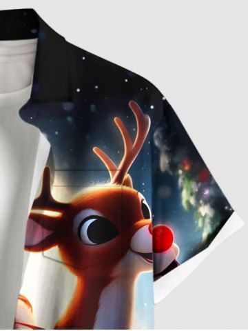 Plus Size Christmas Tree Santa Claus Elk Star Glitter 3D Print Buttons Pocket Shirt For Men - Black - M