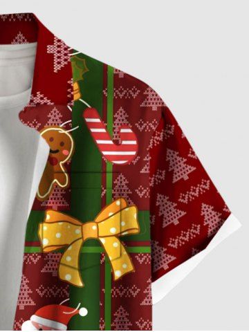 Plus Size Christmas Tree Santa Claus Gingerbread Bowknot Print Buttons Pocket Shirt For Men - Red - M