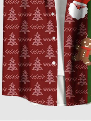 Plus Size Christmas Tree Santa Claus Gingerbread Bowknot Print Buttons Pocket Shirt For Men - Red - 2xl